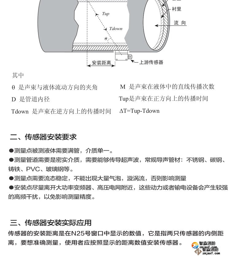 超聲波在流動的流體中傳播時就載上流體流速的信息。因此通過接收到的超聲波就可以檢測出流體的流速,從而換算成流量,圖1。